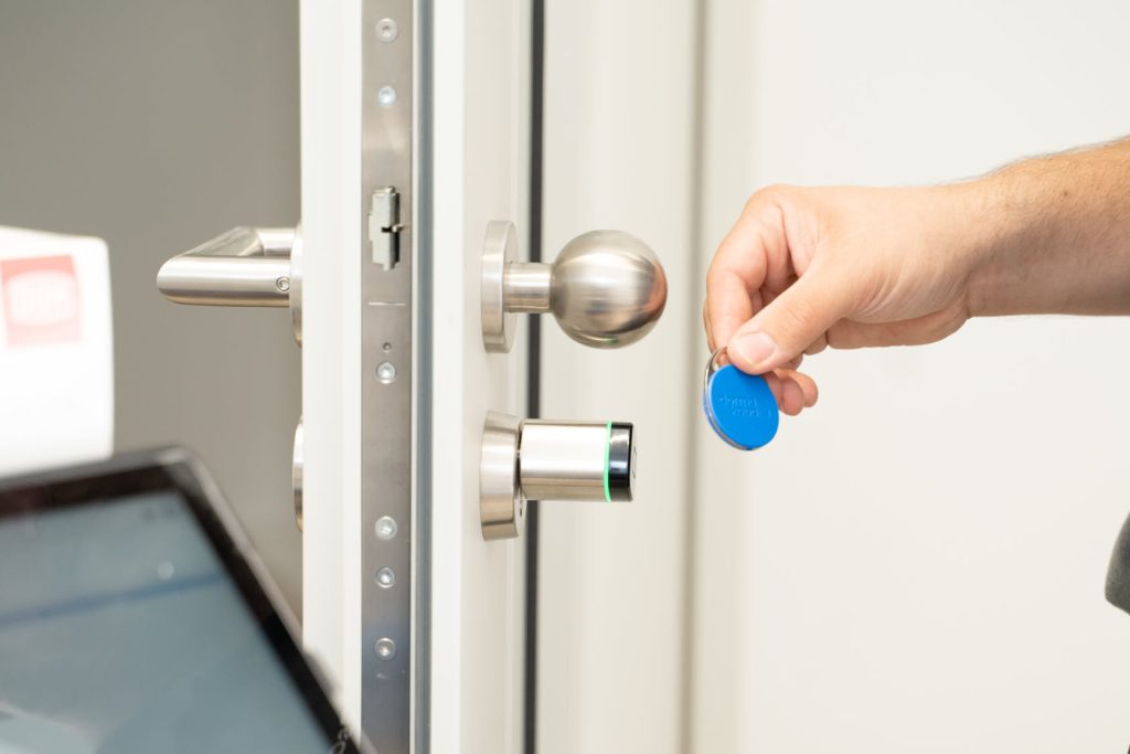 Mit unseren elektronischen Zutrittskontrollsystemen können Sie den Zugang zu Ihren Gebäuden und Räumen einfach und sicher steuern. Wir bieten zeitgemäße Schließmedien an, die nahtlos in Ihre bestehende Infrastruktur integriert werden können. Auch eine Integration in vorhandene mechanische Schließsysteme ist problemlos möglich.